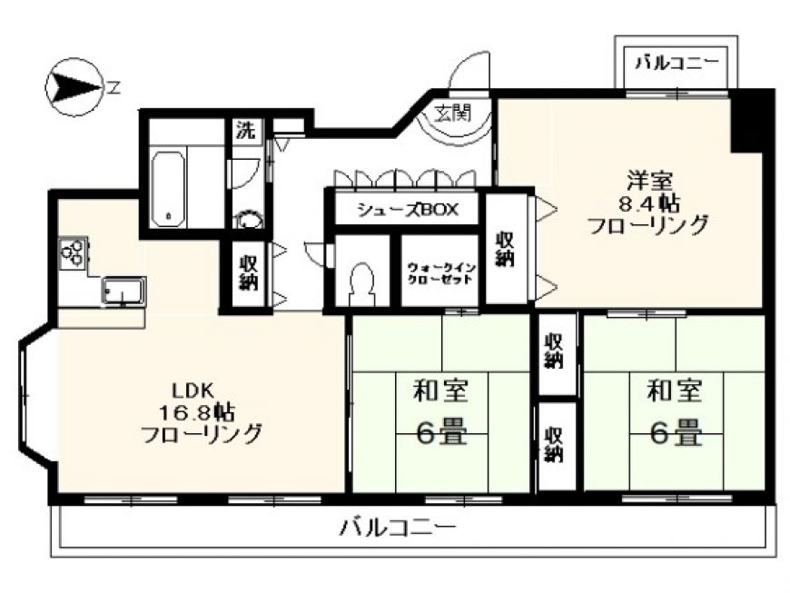 | 間取内訳/間取備考 | 洋8.4帖 / 和6.0帖 / 和6.0帖 / LDK16.8帖/ |