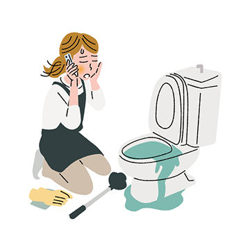 水を流さずに、ラバーカップでつまりものを吸い上げて下さい。
